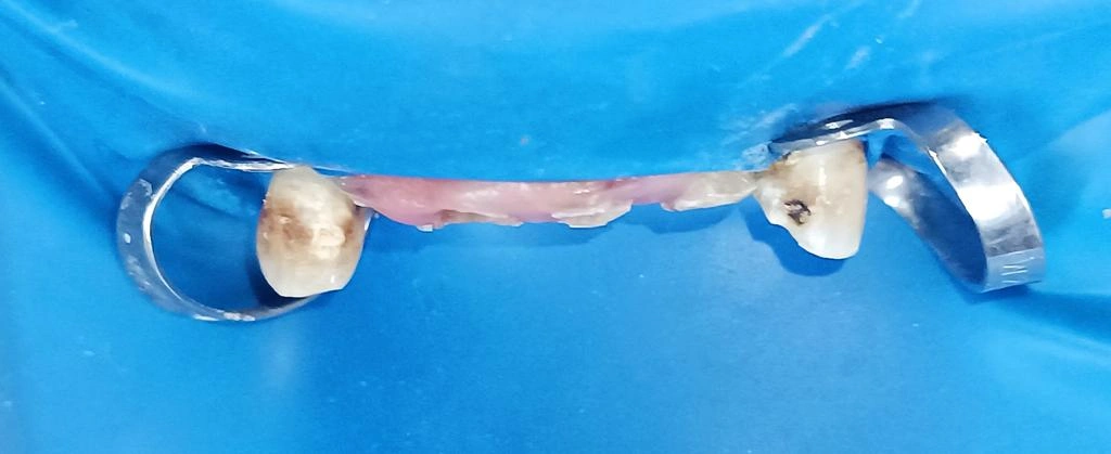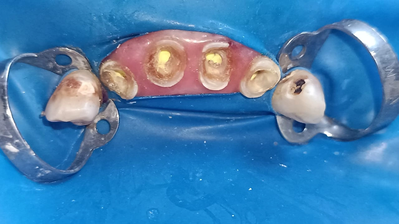 The patient presented with extensive carious involvement in the anterior quadrant, compromised crown height, and reduced structural integrity, affecting both function and aesthetics