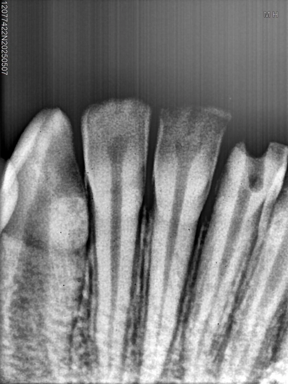 Clinical examination revealed non-vital tooth most likely due to trauma